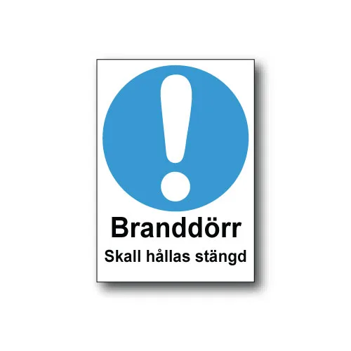 Skylt / Branddörr skall hållas stängd