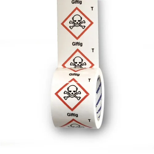 Faropiktogrammet består av laminerad, självhäftande, miljövänlig polypropylen (PP). Materialet tål vatten, olja samt de flesta syror, alkalier och är anpassad för att tåla alla tuffa miljöer, såväl inne som ute. Texten skyddas mot slitage av ett laminerat ytskikt. Märktejpen tål temperaturer upp till 120°C och är UV-resistent.