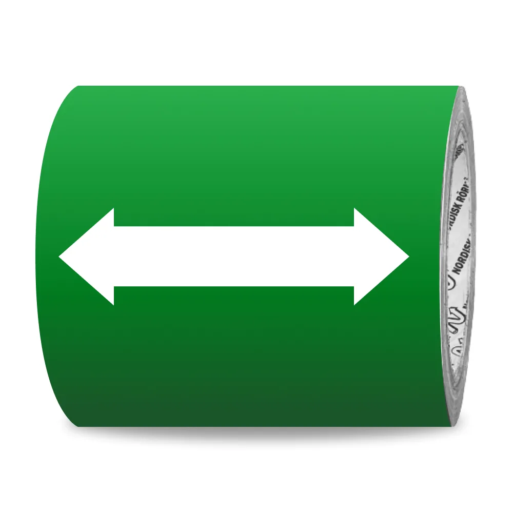 Vi trycker er egen text på den vita pilen som sedan skyddas med ett laminat.