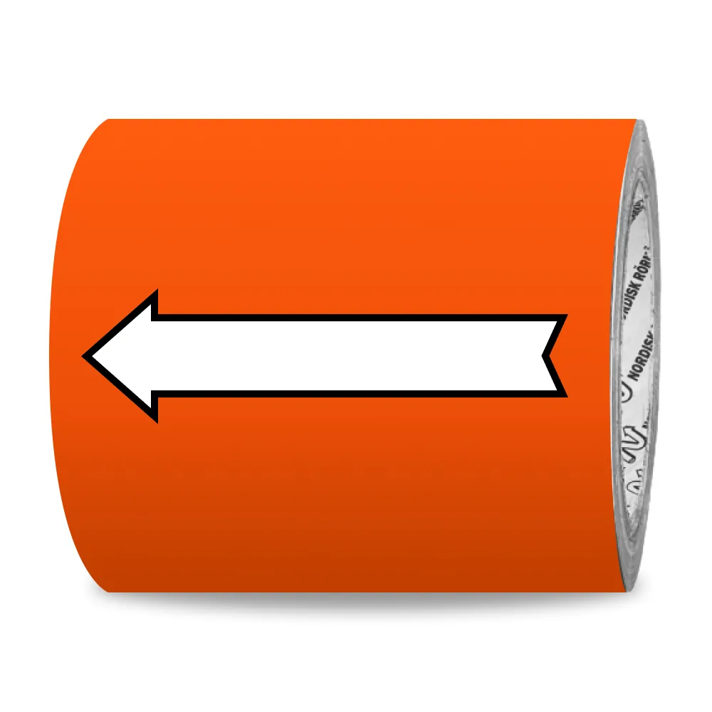 Vi trycker er egen text på den vita pilen som sedan skyddas med ett laminat.