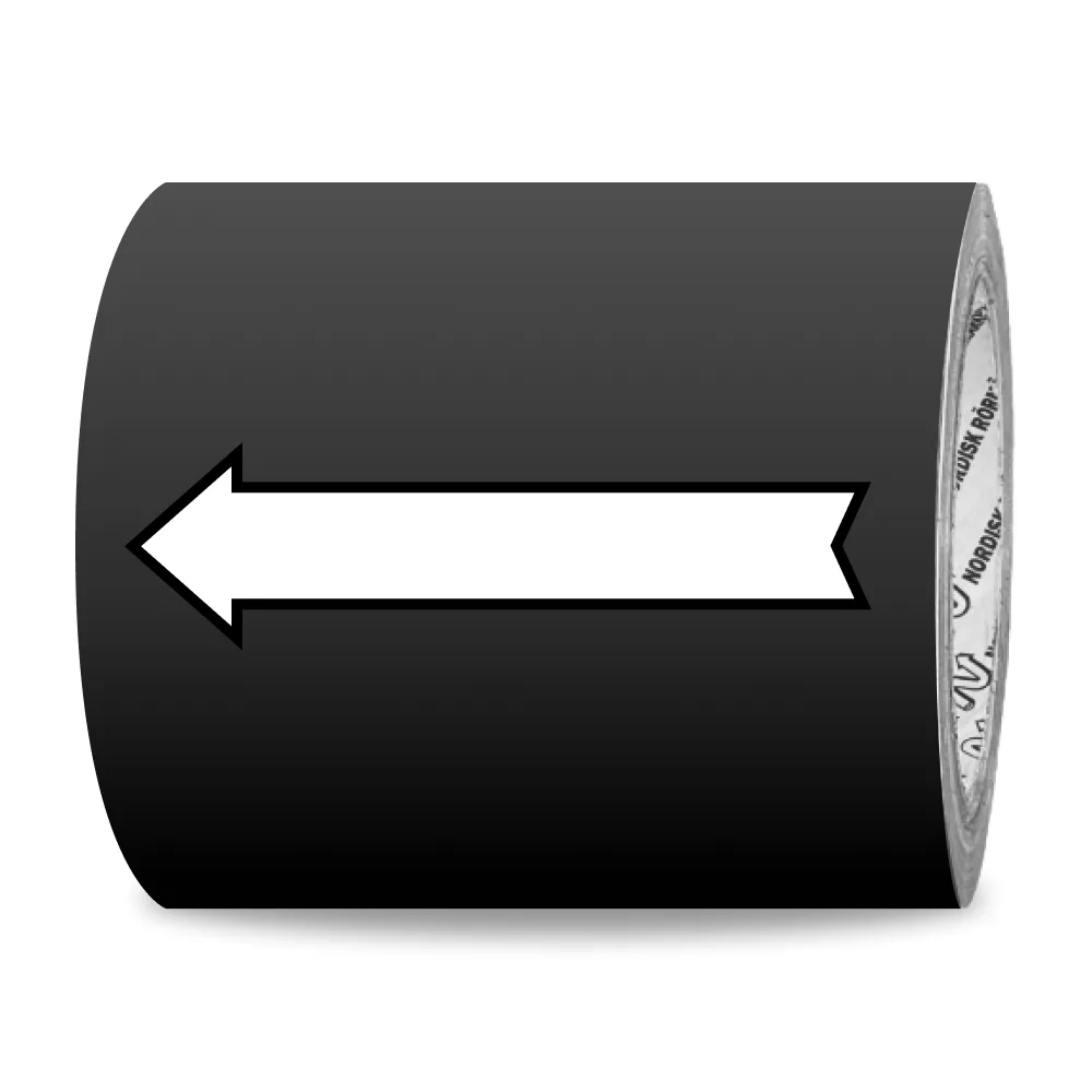Vi trycker er egen text på den vita pilen som sedan skyddas med ett laminat.