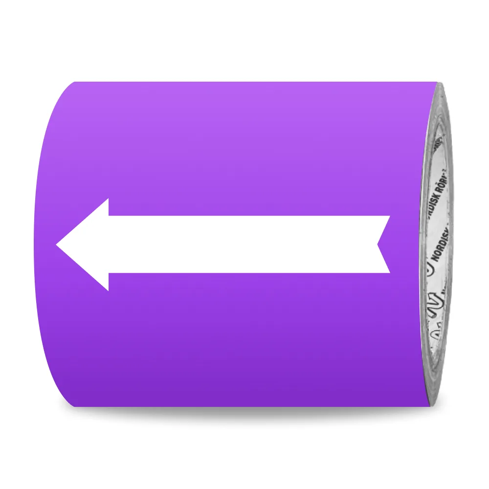 Vi trycker er egen text på den vita pilen som sedan skyddas med ett laminat.