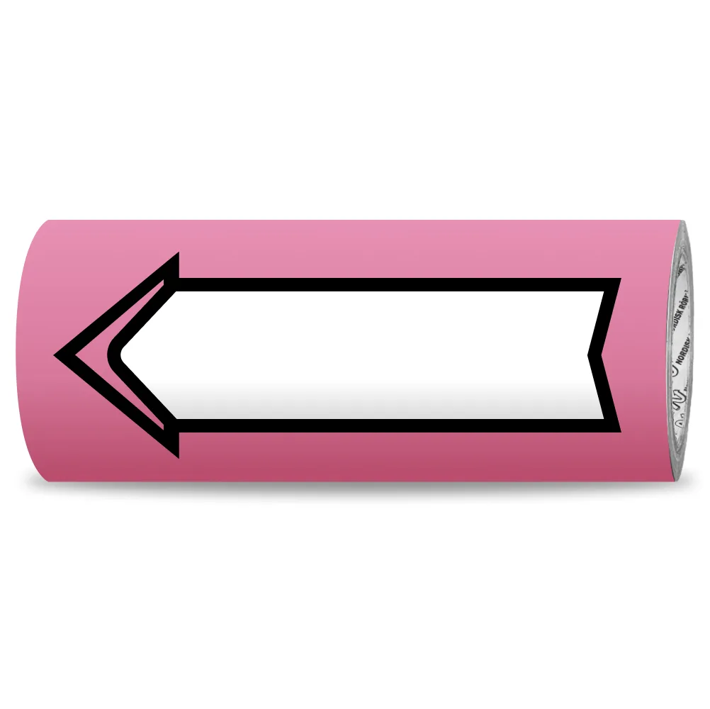Vi trycker er egen text på den vita pilen som sedan skyddas med ett laminat.