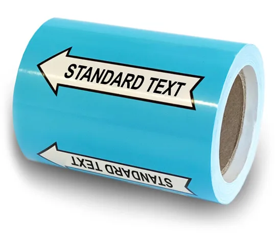 Skyltens storlek väljs utifrån rörets dimension, vilket säkerställer god läsbarhet och korrekt märkning även i tekniska och industriella installationer där skyltformatet är ett bättre alternativ än rörmärkning på rulle.