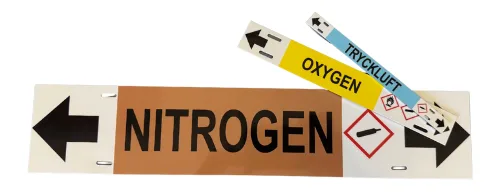 Denna typ av märkning lämpar sig väl i exempelvis tekniska utrymmen, mindre installationer eller där rörledningen inte utsätts för hög belastning, smuts eller slitage.